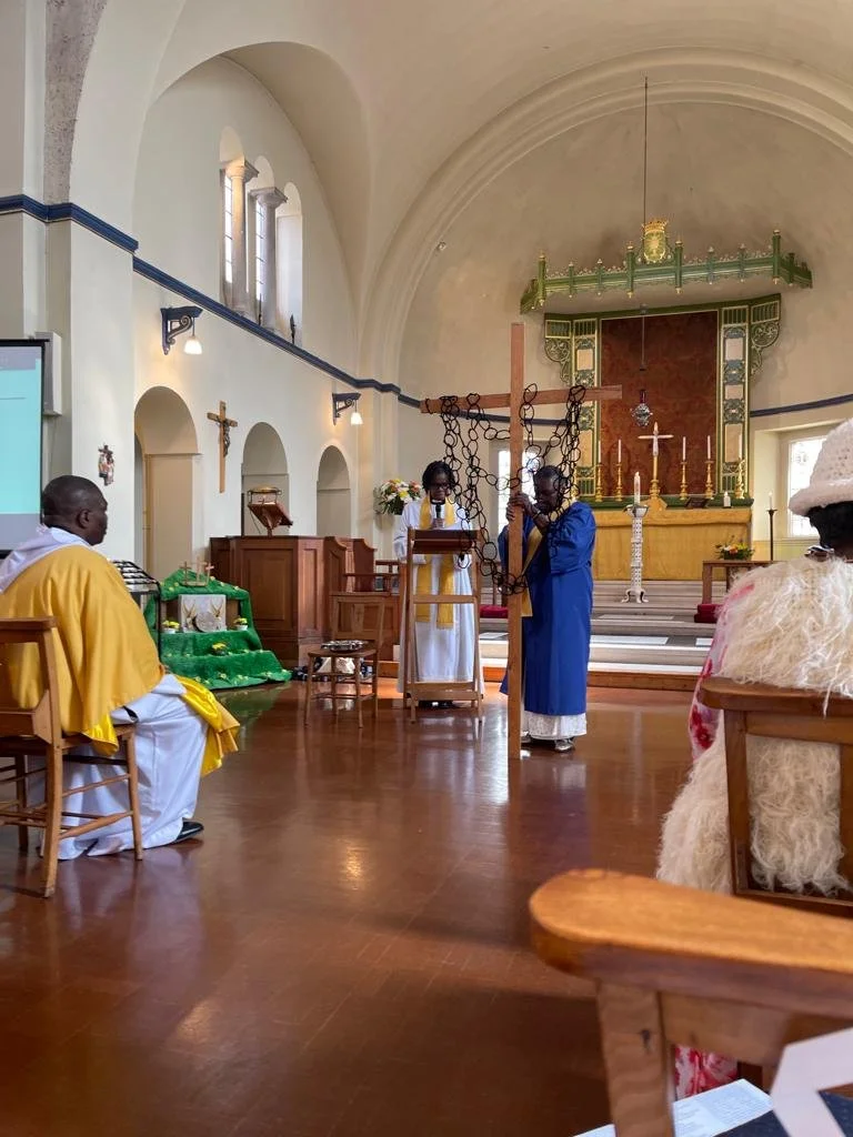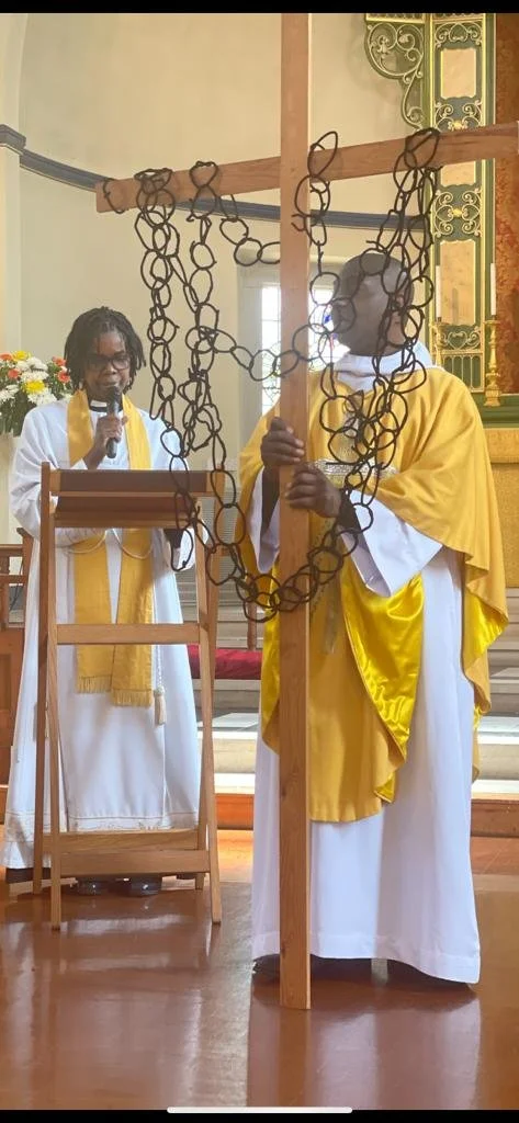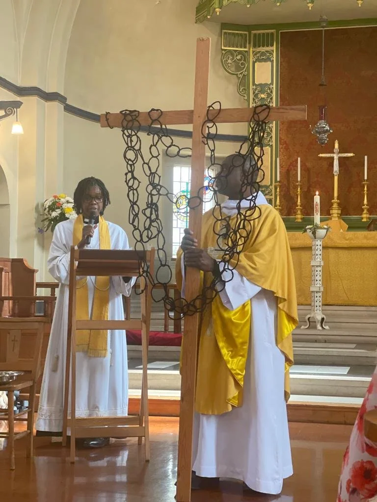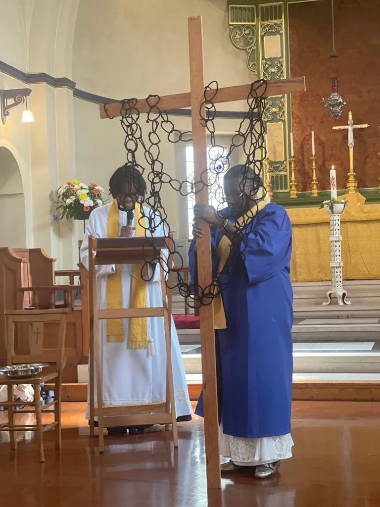We had a very special Easter Sunday celebration this year. We incorporated a chain that was used as an aid to confessing our sins. Each link was made by a member of the congregation and after joining them all, we followed with prayers for confession. We laid our sin on the cross while seeking forgiveness. Take a look below